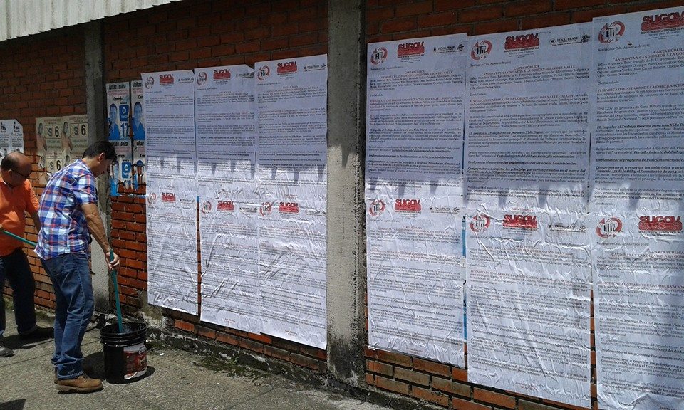 Sobre esa base, el Sindicato Unitario de la Gobernación del Valle–SUGOV–, articuló la Carta Abierta a los Candidatos (puede leerla haciendo CLIC AQUÍ). No quisimos reunirnos a puerta cerrada con ninguno de ellos, a pesar del interés que demostraron en tener acercamientos con la organización. Nuestra decisión obedece a una filosofía de lucha: Actuamos de cara a la base, jamás a puerta cerrada.