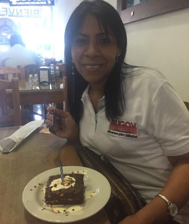 | En un receso de la jornada de trabajo, la celebración del cumpleaños de nuestra compañera, María del Pilar Navia, miembro de la Comisión de Reclamos. ¡Felicitaciones! |