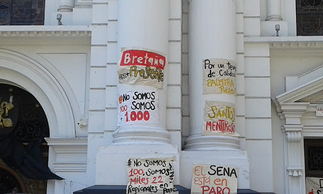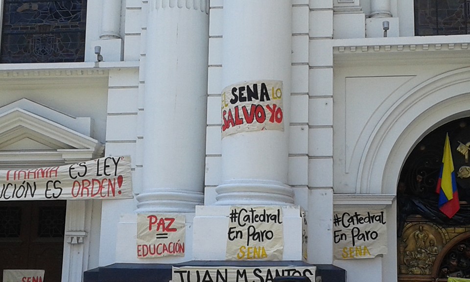“Desde aquí elevamos nuestra voz de solidaridad con los estudiantes, contratistas y trabajadores del SENA, convencidos de que las reclamaciones que abanderan en materia de salud, de seguridad e incluso de garantías presupuestales para asegurar la permanencia del servicio, son más que justas y legitiman la ocupación al principal centro de reunión de los católicos en Cali”, dijo un dirigente sugoviano al intervenir públicamente.